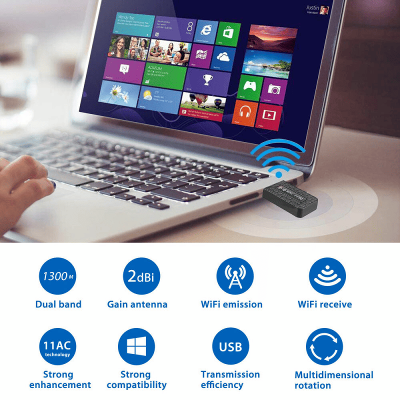 - Ultimate Wi-Fi Speed, you can get 867Mbps wireless speed on 5GHz WiFi Band or 400Mbps speed on a 2.4GHz WiFi band, excellent for online 4k video streaming, gaming, high-quality music, and Facebook by using this dual-band USB Wi-FI adapter.